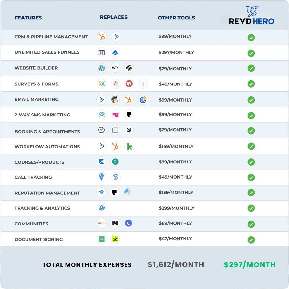 Yes, Revd Hero integrates with most platforms — including Facebook, Google, Instagram, Calendly, Mailchimp, Stripe, and your existing website forms.